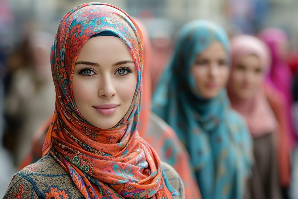 - L’utilisation du foulard : de nombreuses femmes préfèrent désormais porter un simple foulard autour de la tête, noué à l’arrière ou à la manière d’un turban. Cette façon moderne et décontractée de porter le hijab est idéale pour celles qui aiment s’affirmer sans renoncer à leur féminité.